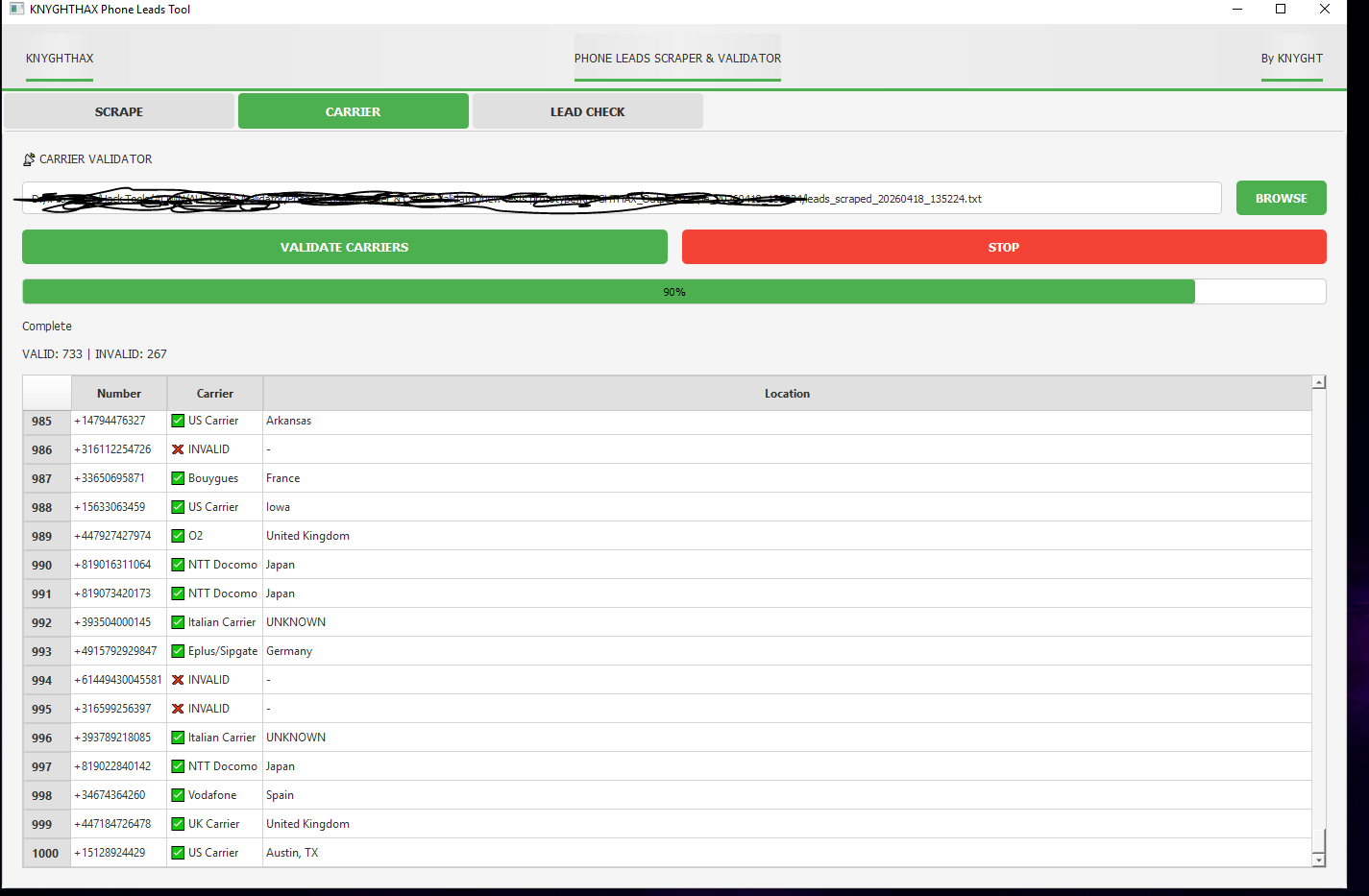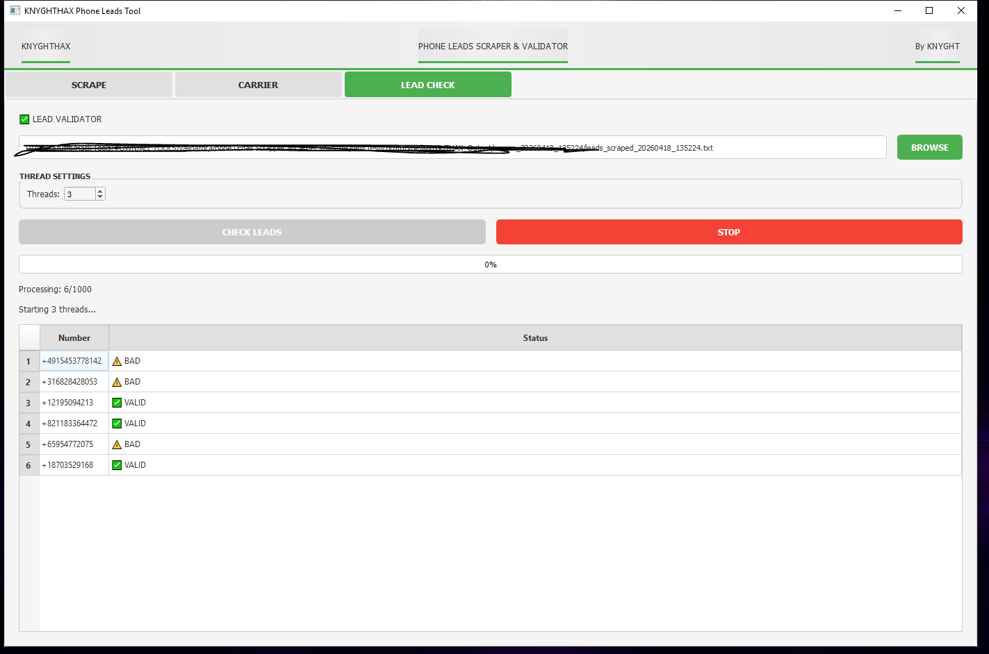 This is a telecom data extraction and verification pipeline built for pulling active phone numbers, identifying which carriers own them, and confirming which ones are live.